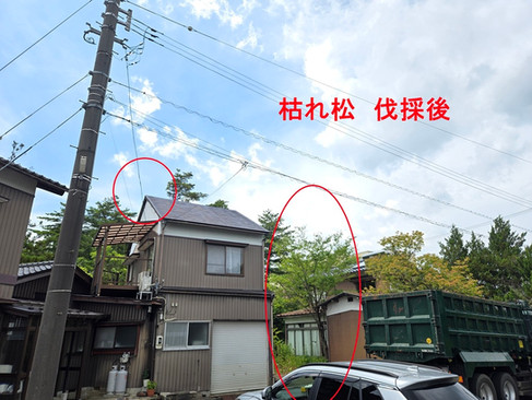 丹巌洞様の敷地内の枯れ松を伐採しました。